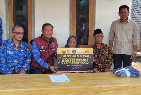 Pada peringatan tahun ini, Korpri Ngawi menyalurkan bantuan RTLH sebanyak 10 titik. Selain Mbah Kilah, Wabup Antok turut menyerahkan kepada Sukardi, warga Desa Gayam, dan Samsudin, warga Krandegan.
