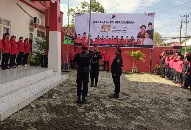 BOJONEGORO – Memperingati Hari Ulang Tahun (HUT) PDI Perjuangan yang ke-53, Dewan Pimpinan Cabang (DPC) PDI Perjuangan Kabupaten Bojonegoro menggelar upacara bendera yang khidmat di halaman kantor DPC, Jl. Panglima Polim, Sumbang, pada Sabtu (10/1/2026).