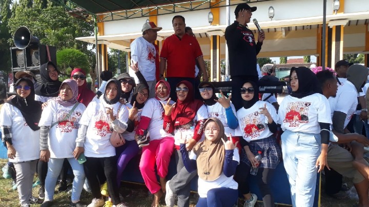 SITUBONDO – Kalangan ibu-ibu, perempuan dan anak-anak muda di Situbondo bersemangat mengikuti senam sehat yang digelar Relawan Sahabat Ganjar di Alun-alun Besuki, Minggu (18/6/2023) pagi.