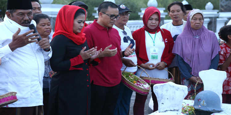 BANYUWANGI – Di sela kunjungannya di Bumi Blambangan, Cawagub Puti Guntur Soekarno menyempatkan diri berziarah ke makam Wisma Raga Satria Angkatan Laut Republik Indonesia (ALRI), Lingkungan Kampung Ujung, Kelurahan Kepatihan, Banyuwangi, Senin (26/3/2018).