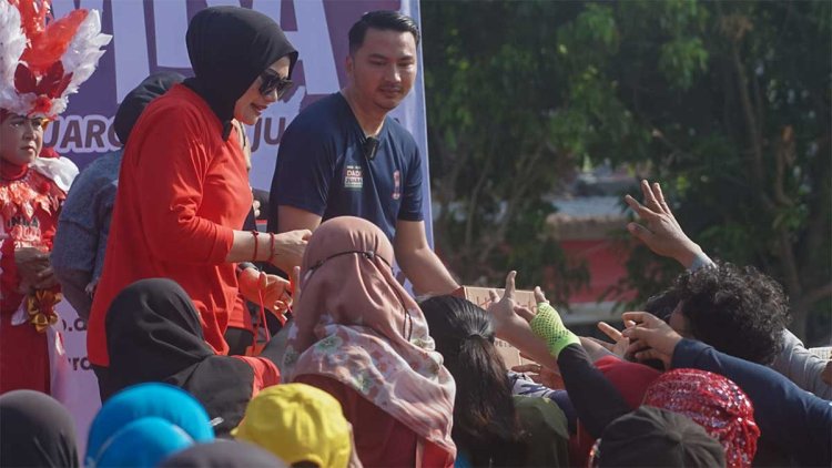 “Jangan lupa hadir di TPS, dan jika berkenan, coblos nomor satu,” ujar Inda Raya.