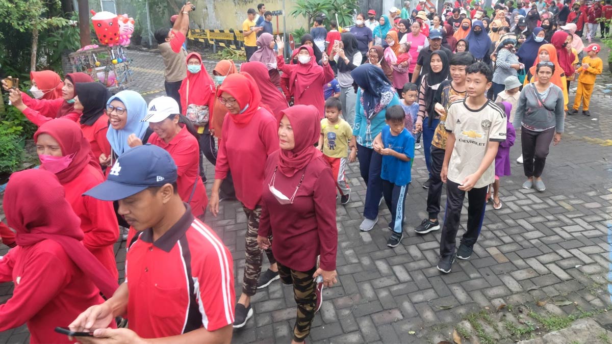 Jalan sehat diikuti ribuan warga. Peserta pun “menyerbu” Stan-stan milik UMKM setempat selepas garis finish.