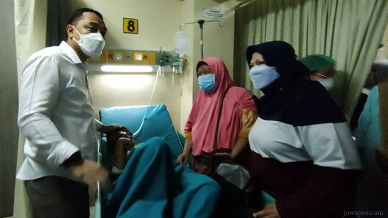 SURABAYA – Wali Kota Surabaya Eri Cahyadi menjenguk para korban insiden ambruknya perosotan Waterpark di kompleks wisata Kenpark Kenjeran yang mengakibatkan 16 korban luka, di RSUD Dr Soetomo dan RSUD Dr Soewandhi pada Sabtu (7/5/2022) malam.