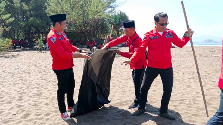 Kader Banteng Jember Upacara 17-an di Pantai Watu Ulo, Lanjut Bersih-Bersih Pesisir