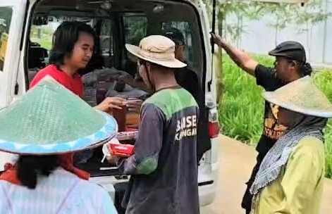 Menjelang siang hari, jajaran struktural DPC PDI Perjuangan Ngawi nampak membawa kantong-kantong berisi nasi kotak dan minuman es teh. Satu per satu paket tersebut dibagikan langsung kepada para pengumpul sampah yang tengah beristirahat di sela-sela aktivitas mereka.