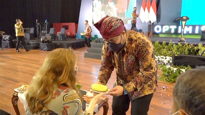 “Saya minta bu gubernur, bupati, walikota mencicipi nanas termanis se-Indonesia,” tutur Kepala daerah yang juga kader PDI Perjuangan tersebut
