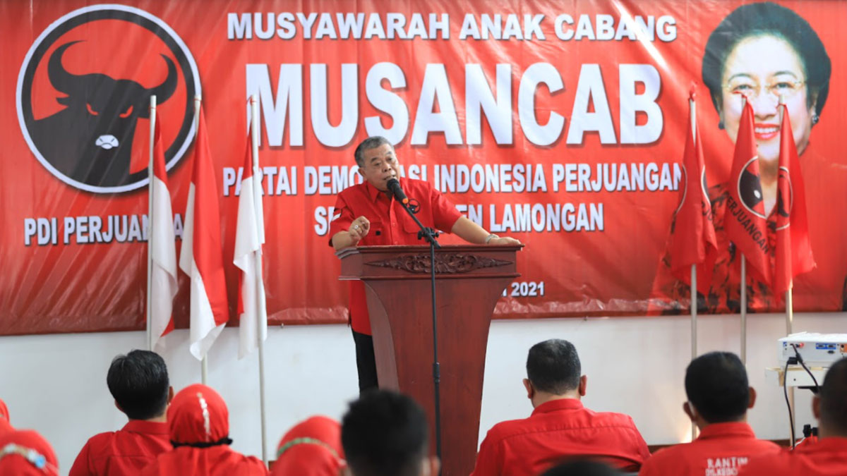 “Jangan ikut berpolemik terhadap apa yang sekarang mulai muncul di media sosial tentang Mbak Puan Maharani dan Mas Ganjar Pranowo,” tegas Kusnadi saat membuka musyawarah anak cabang PAC PDI Perjuangan se-kabupaten Lamongan di aula DPC, Selasa (25/5/2021).