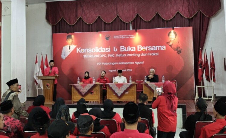 NGAWI – Gedung Fatmawati, Kantor DPC PDI Perjuangan Kabupaten Ngawi, dipenuhi kader banteng pada Jumat (13/3/2026). Sore itu, DPC PDI Perjuangan Ngawi menggelar konsolidasi internal berskala besar yang diikuti kader dari berbagai tingkatan organisasi.