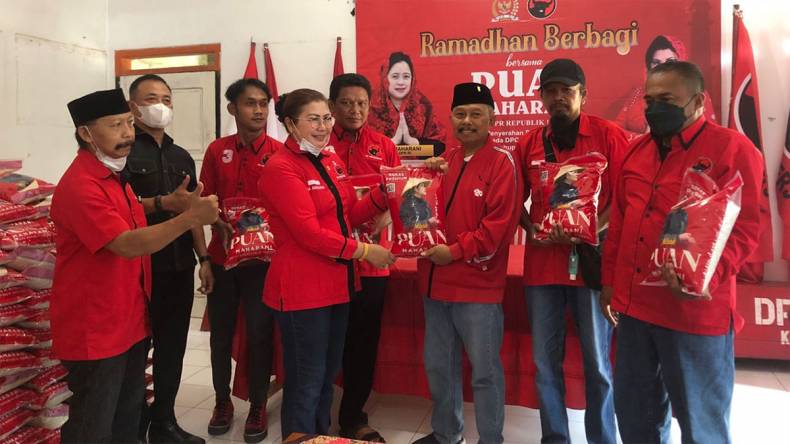Sebanyak 1.000 paket, masing-masing berisi 5 Kg beras kualitas premium dari Puan Maharani itu diserahkan secara simbolis di kantor DPC PDI Perjuangan Kabupaten Pacitan, Senin (25/4/2022).