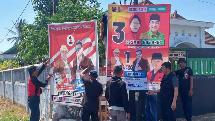 Sekadar informasi, di Kecamatan Binangun sendiri saat ini setidaknya ada sebanyak 100 banner gambar Risma-Gus Hans, serta Rijanto-Beky yang sudah terpasang. Ratusan banner itu tersebar di seluruh pelosok desa. (arif/pr)