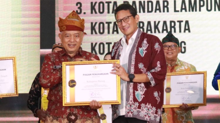 Penghargaan tersebut diserahkan langsung oleh Menteri Pariwisata dan Ekonomi Kreatif (Menparekraf), Dr H Sandiaga Salahuddin Uno, dan diterima langsung oleh Bupati Malang HM Sanusi di Balairung Soesilo Soedarman Gedung Sapta Pesona, Jl. Medan Merdeka Barat, Jakarta, Senin (9/9/2024) malam.