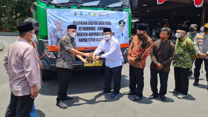 Selain itu, dia juga berbangga karena salah satu produk UMKM Tulungagung, yakni UD Karya Indonesia di Desa Waung Kecamatan Boyolangu dapat mengekspor produk fosil kayu ke Hamburg – Jerman. Terlebih ekspor produk fosil kayu tersebut dilepas pula oleh Teten Masduki bersamaan dengan launching Cangkul Merah Putih SNI.