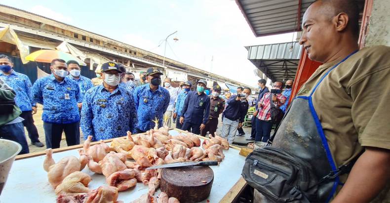 TULUNGAGUNG – Bupati Tulungagung, Maryoto Birowo, memantau harga kebutuhan bahan pokok di tengah bulan Ramadan dengan mendatangi langsung Pasar Ngemplak Kota Tulungagung, Senin (18/4/2022).