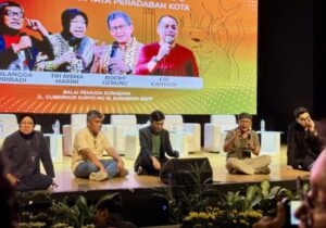 Selain itu, bedah buku yang dimoderatori Ketua Persatuan Alumni (PA) Gerakan Mahasiswa Nasional Indonesia (GMNI) Jawa Timur Deni Wicaksono itu juga menghadirkan dua narasumber. Yakni anggota DPR RI Puti Guntur Soekarno dan Connie Rahakundini, akademisi, penulis, pengamat bidang militer dan hankam. Serta dihadiri oleh Wali Kota Surabaya, Eri Cahyadi. (dhani/set)