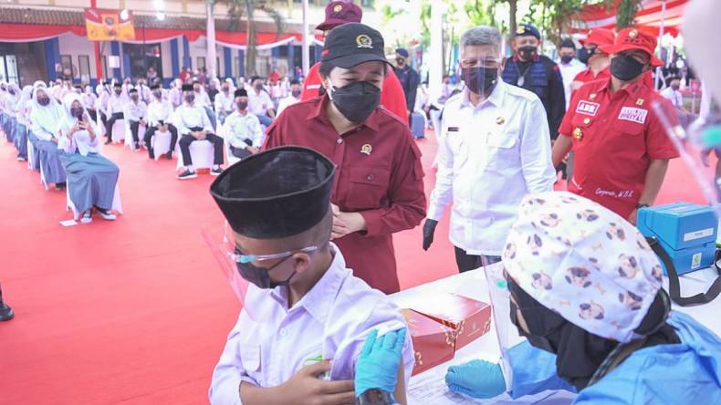 Ikatan Dokter Anak Indonesia (IDAI) merekomendasikan sejumlah hal yang perlu dilakukan sebelum PTM 100% diterapkan, salah satunya adalah vaksinasi anak lengkap atau 2 dosis. Oleh karena itu Puan mendorong percepatan vaksinasi anak usia sekolah.