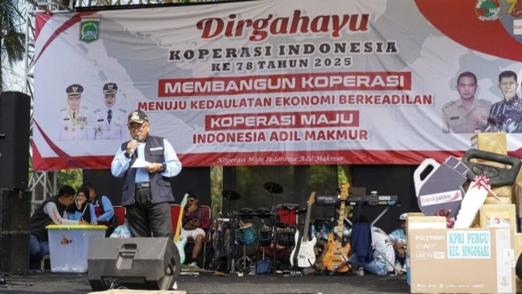MALANG – Bupati Malang HM Sanusi menghadiri peringatan Hari Koperasi Nasional (Harkopnas) ke-78 di Lapangan Wisata Selorejo, Kecamatan Ngantang, Minggu (27/7/2025). Dalam momen itu, dia mengajak para pelaku koperasi mengelola koperasi dengan profesional, akuntabel dan jujur.