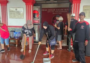 MAGETAN — Kader PDI Perjuangan Kabupaten Magetan menggelar kerja bakti bersama membersihkan Kantor Dewan Pimpinan ...