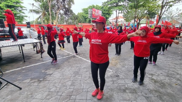 Pertama, Senam Indonesia Cinta Tanah Air (Sicita) yang dilaksanakan di pelataran Kantor DPD PDIP Jawa Timur pada pagi tadi. Senam dilakukan para kader juga diikuti warga sekitar.
