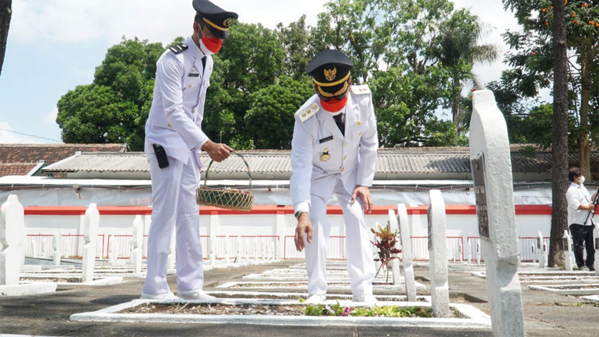 Sebelum ziarah ke Taman Makam Paahlawan, Wali Kota Santoso mengikuti upacara Detik-Detik Proklamasi bersama Presiden Joko Widodo secara virtual di Balai Kota Kusumawicitra.