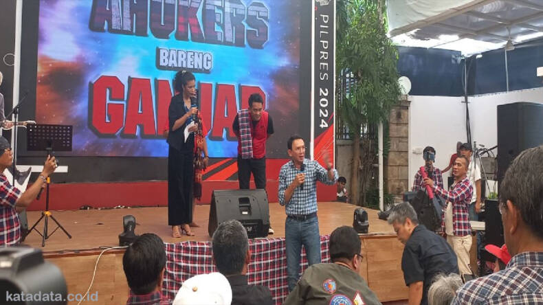 Sedangkan para pendukungnya mengenakan kemeja kotak-kotak berwarna merah-hitam, pakaian khas yang sering dikenakan Ahok. “Ahokers, bareng Ganjar, Ahokers, bareng Ganjar,” teriak relawan.