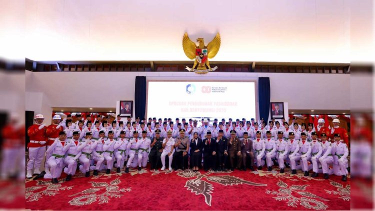BANYUWANGI – Sebanyak 75 anggota Pasukan Pengibar Bendera Pusaka (Paskibraka) dikukuhkan Bupati Banyuwangi, Ipuk Fiestiandani, di Pendopo Sabha Swagata Blambangan, Jumat (15/8/2025) malam. Mereka akan bertugas pada upacara peringatan HUT ke-80 Kemerdekaan RI di Taman Blambangan pada Minggu, 17 Agustus 2025.
