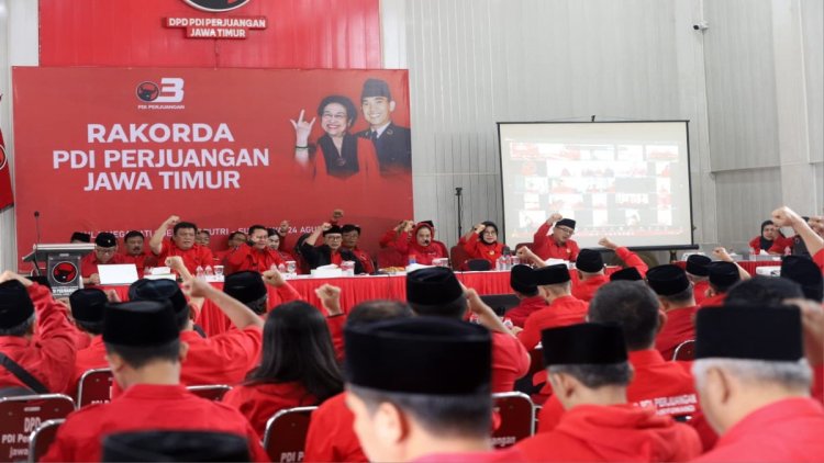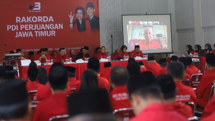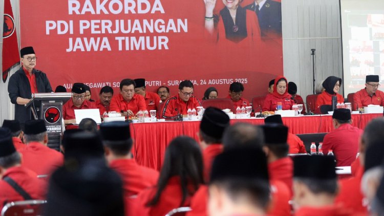 SURABAYA — Dewan Pimpinan Daerah PDI Perjuangan Jawa Timur menggelar Rapat Koordinasi Daerah (Rakorda) bersama Ketua, Sekretaris, dan Bendahara (KSB) dari 38 DPC PDI Perjuangan kabupaten/kota se-Jawa Timur serta KSB dari 666 Pengurus Anak Cabang (PAC) se-Jawa Timur, Minggu (24/8/2025).