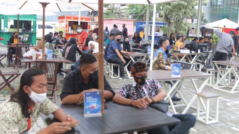 Para kawula muda anggota TMP bersama para pelaku UMKM Kota Surabaya dan Sidoarjo mengikuti acara Sosialisasi Gerakan Nasional Non Tunai bertema Solusi Cerdas Pembayaran Digital, Jumat (18/3/2022).