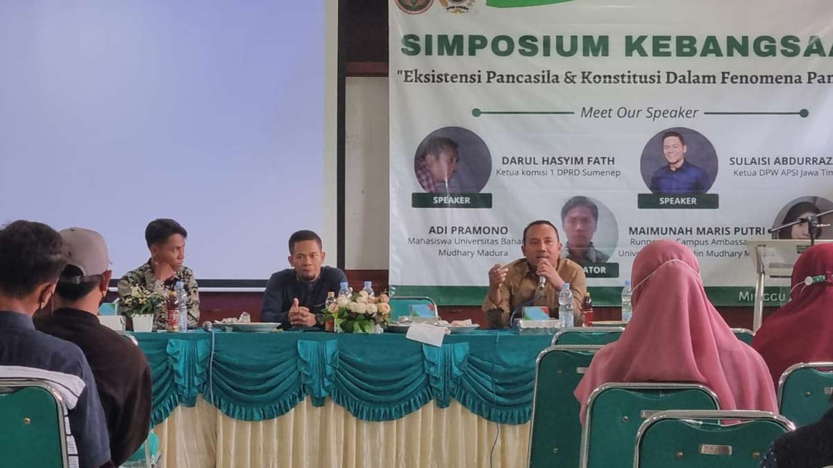 Hal itu dia sampaikan ketika menjadi pembicara dalam Simposium Kebangsaan “Eksistensi Pancasila & Konstitusi dalam Fenomena Pandemi” di Universitas Bahaudin Mudhary (Uniba) Madura, Minggu (3/10/2021). Simposium yang diselenggarakan oleh DPM Uniba ini diikuti oleh ratusan mahasiswa dari berbagai perguruan tinggi di Madura.