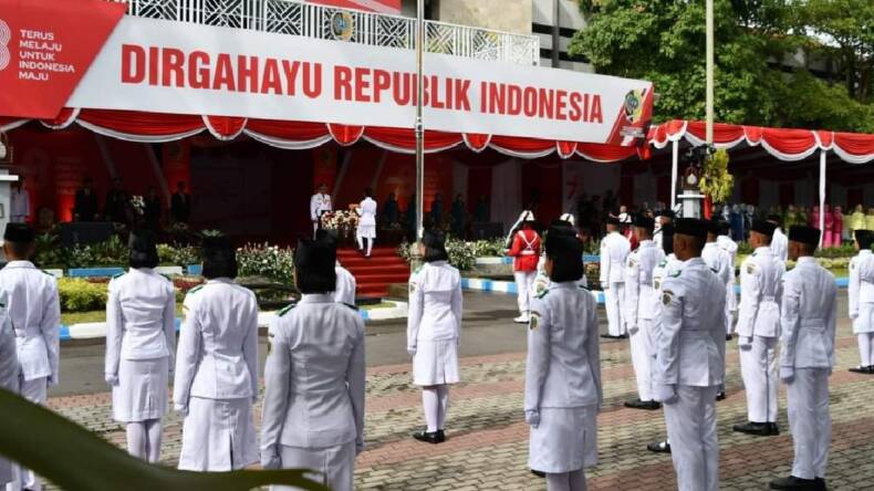Ajakan ini disampaikan pada kegiatan upacara bendera memperingati detik-detik Proklamasi Kemerdekaan 1945 di halaman Kantor Pemkab Tulungagung, Kamis (17/8/2023).