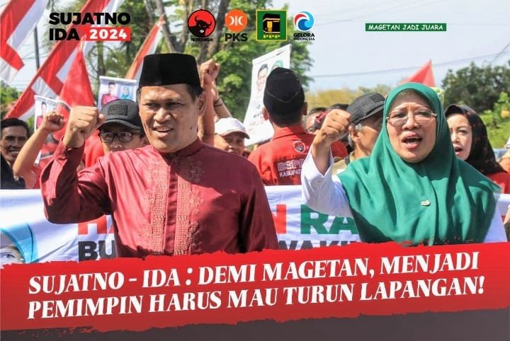 MAGETAN – JADI JUARA, begitu akronim dari pasangan bakal calon bupati dan wakil bupati Magetan, Sujatno – Ida Yuhana Ulfa.