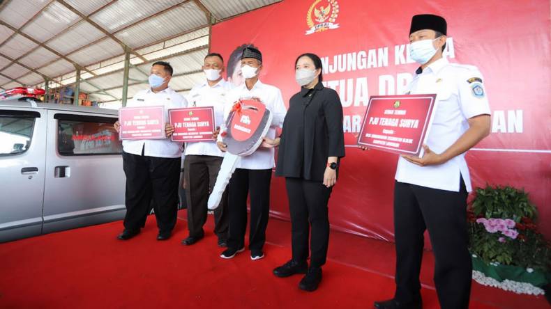 Di pasar tersebut, perempuan pertama yang menjabat Ketua DPR RI ini juga menyerahkan bantuan 250 tiang penerangan jalan umum (PJU) tenaga surya untuk nelayan.