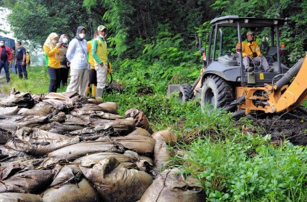 “Karena ini bukan sampah domestik, maka tidak memungkinkan dibuang ke TPA. Jalan satu-satunya adalah ditimbun,” jelasnya.