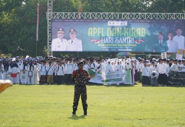 NGAWI – Peringatan Hari Santri Nasional (HSN) 2025 di Kabupaten Ngawi berlangsung meriah. Ribuan umat Islam memadati Alun-alun Merdeka Ngawi, Rabu (22/10/2025), untuk mengikuti apel dan kirab santri yang menjadi puncak perayaan.