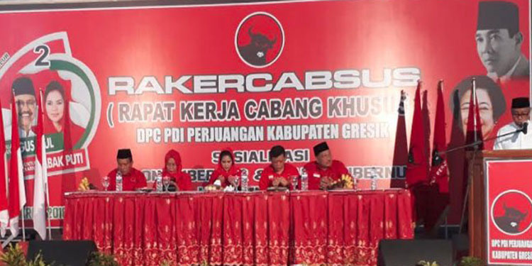 GRESIK – Cawagub Puti Guntur Soekarno mengingatkan jajaran pengurus PDI Perjuangan se-Kabupaten Gresik, agar mulai bergerak dari rumah ke rumah warga untuk memenangkan pasangan calon nomor urut dua.