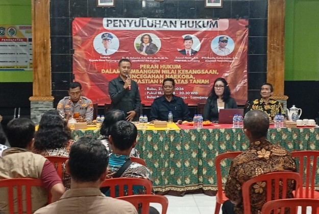 Hal itu menjadi tekad seluruh elemen masyarakat yang hadir dalam acara penyuluhan hukum bertema: Peran Hukum dalam Membangun Nilai Kebangsaan, Pencegahan Narkoba, dan Kepastian Hak Atas Tanah, di Balai Desa Tunjungrejo Kecamatan Yosowilangun Kabupaten Lumajang, Rabu (22/4/2026) malam.