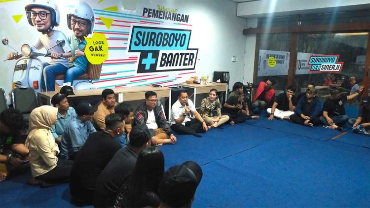 SURABAYA – Puluhan pemuda tergabung sebagai relawan bertemu dengan calon Wali Kota Surabaya Eri Cahyadi, dalam bentuk cangkrukan yang berlokasi di Posko Pemenangan Eri Cahyadi-Armuji, Jumat (4/10/2024).