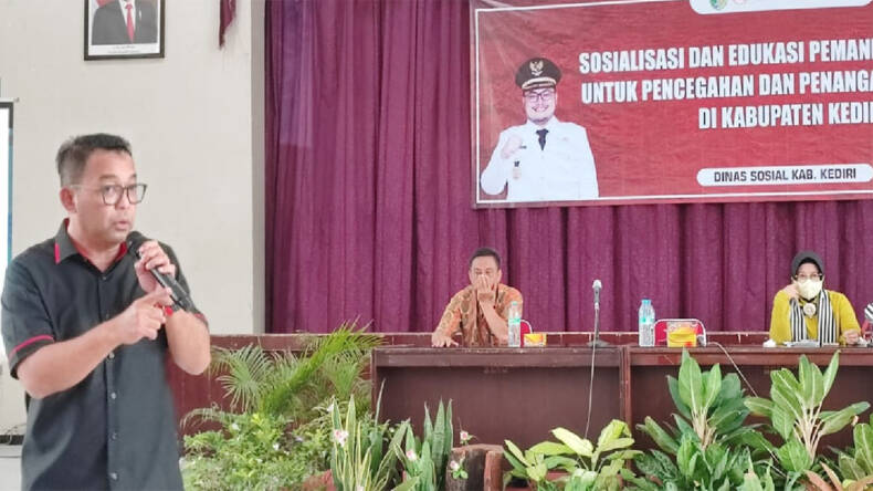 Kegiatan yang diinisiasi Dinas Sosial Kabupaten Kediri ini dilaksanakan di Gedung Bagawanta. Teknisnya sosialisasi dibagi dalam dua sesi.