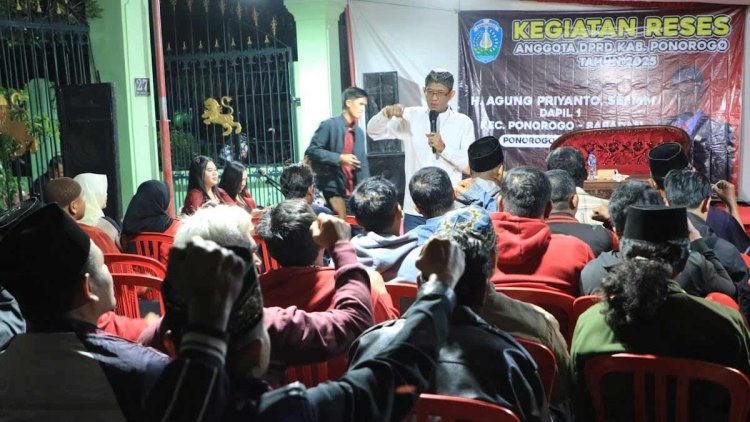 PONOROGO – Anggota Fraksi PDI Perjuangan DPRD Ponorogo, Agung Priyanto, menggelar reses di rumahnya yang berada di Jalan Mayjend Sutoyo Kelurahan Kertosari, Kecamatan Babadan, Jumat (18/7/2025) malam.