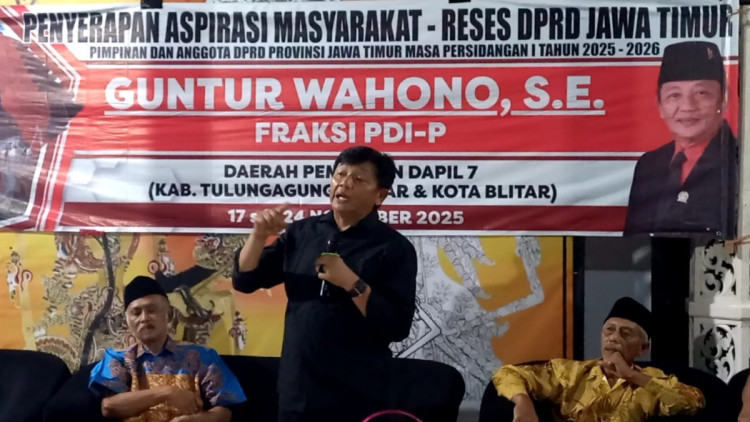 BLITAR – Anggota Fraksi PDI Perjuangan DPRD Jawa Timur Guntur Wahono, menggelar reses dengan tema “Penerapan Aspirasi Masyarakat” di kediamannya, Desa Tambakboyo, Kecamatan Sanankulon, Kabupaten Blitar, pada Jumat (21/11/2025) malam.