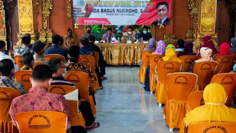 NGANJUK – Mengawali penjaringan aspirasi masa reses ke-III tahun ini, Anggota Komisi E DPRD Jawa Timur, Ida Bagus Nugroho SH menggelar pertemuan dengan konstituen di Desa Sidokare Kecamatan Rejoso dan Desa Sudimoroharjo Kecamatan wilangan, Senin (1/11/2021).