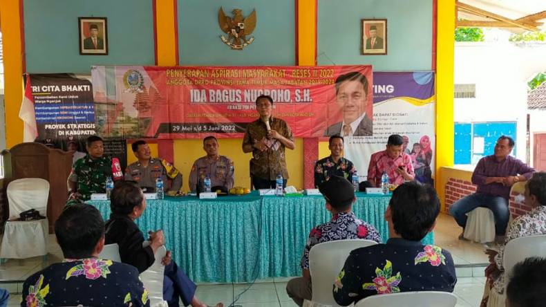 NGANJUK – Titik ke enam serap aspirasi rakyat di masa reses pekan ini laksanakan anggota DPRD Jatim, Ida Bagus Nugroho, Desa Jatigreges Kecamatan Pace Kabupaten Nganjuk.