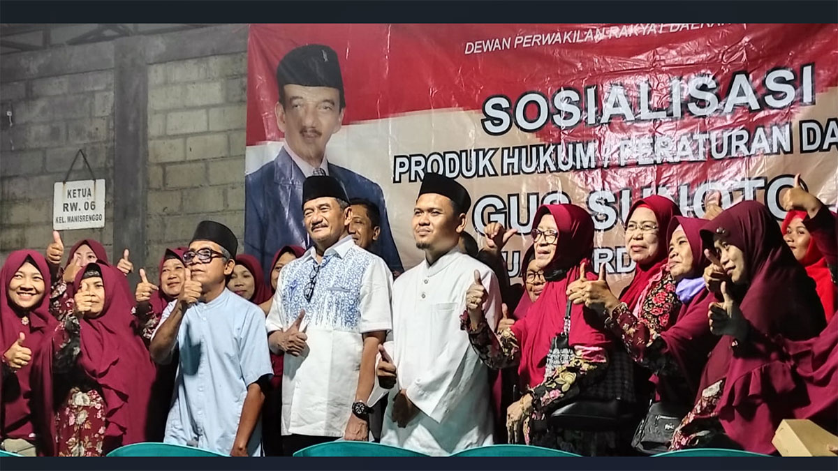KEDIRI – Di pengujung tahun, Ketua DPRD Kota Kediri Gus Sunoto Imam Mahmudi menggelar kegiatan sosialisasi produk hukum/peraturan daerah Rabu (7/12/2022) malam. Sosialisasi terkait reses kali digelar di lingkungan Kelurahan Manisrenggo, Kecamatan Kota Kediri.
