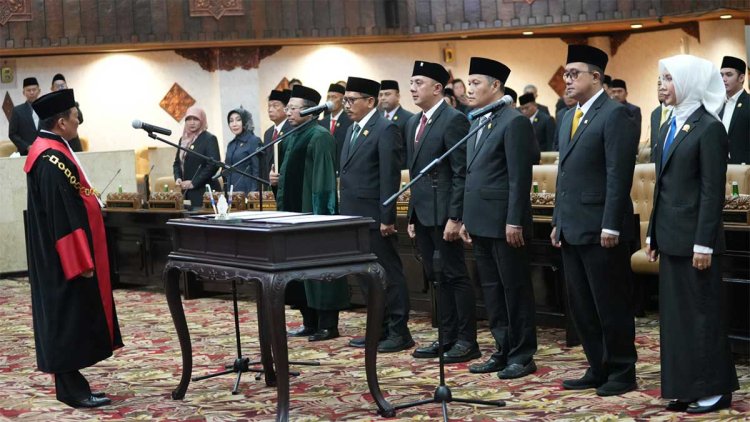 SURABAYA – Politisi PDI Perjuangan Deni Wicaksono resmi menjabat sebagai wakil Ketua DPRD Jawa Timur. Deni tercatat sebagai pimpinan DPRD Jatim termuda sepanjang sejarah ini mengucapkan sumpah/janji bersama empat pimpinan DPRD lainnya, Kamis (24/10/2024).