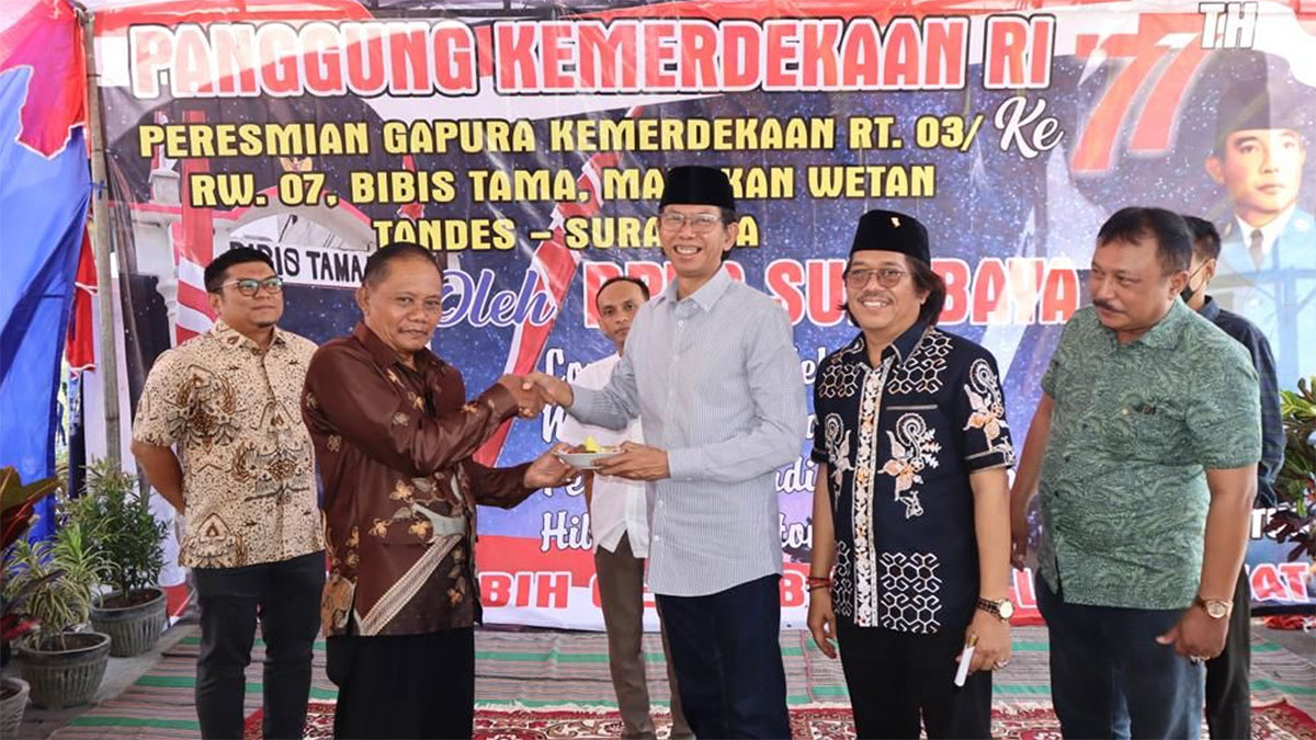 Peresmian “Gapura Kemerdekaan” dihadiri Sekretaris Komisi A DPRD Surabaya Budi Leksono, Camat Tandes Yardo, Ketua PAC PDI Perjuangan Tandes Heri Akhmad Wiyono, Ketua RW 07, jajaran perangkat kampung, dan ibu-ibu penggerak PKK serta kader Surabaya Hebat.