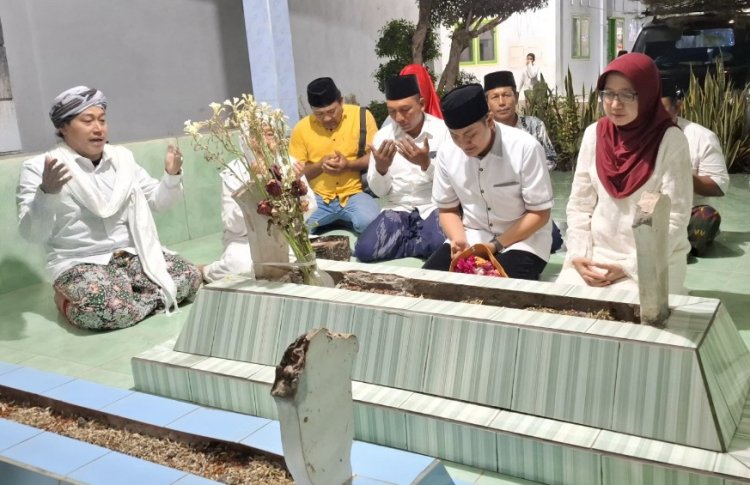 Dalam kunjungan tersebut, bunda Indah dan mas Yudha berkesempatan berziarah dan berdoa bersama di makan sesepuh Pondok Pesantren Al-Ikhlas Al-Muhdlory. (ndy/hs)