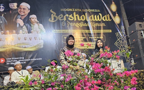 SIDOARJO – Calon Gubernur Jawa Timur, Tri Rismaharini menghadiri acara pengajian memperingati Milad ke-4 Moonzaya sekaligus Maulid Nabi Muhammad SAW di Desa Blurukidul Kecamatan Sidoarjo, Sabtu (12/10/2024) malam.