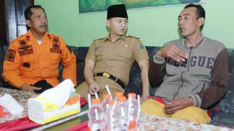 TRENGGALEK – Bupati Trenggalek Mochamad Nur Arifin menjenguk nelayan Kecamatan Watulimo yang selamat dari kecelakaan laut (laka laut) di Pantai Gladak, Kecamatan Tanggunggunung, Kabupaten Tulungagung, Selasa (8/8/2023).