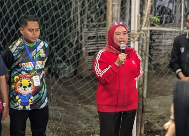 KOTA PROBOLINGGO — Wakil Ketua DPRD Kota Probolinggo, Santi Wilujeng Prastyani, membuka turnamen voli di Kelurahan Jrebeng Kulon, Kecamatan Kedopok, Rabu (23/7/2025) malam.