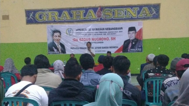 NGANJUK – Seharian ini, Minggu (9/10/2022), anggota DPRD Jawa Timur Ida Bagus Nugroho menggelar sosialisasi wawasan kebangsaan di dua tempat berbeda.