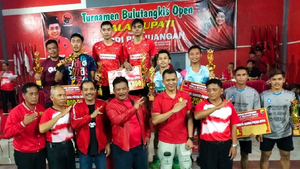 NGANJUK – Kejuaraan bulutangkis memperingati Hari Ulang Tahun (HUT) ke-50 PDI Perjuangan di GOR Marhaenis DPC PDI Perjuangan Nganjuk berakhir Minggu (12/2/2022) malam.